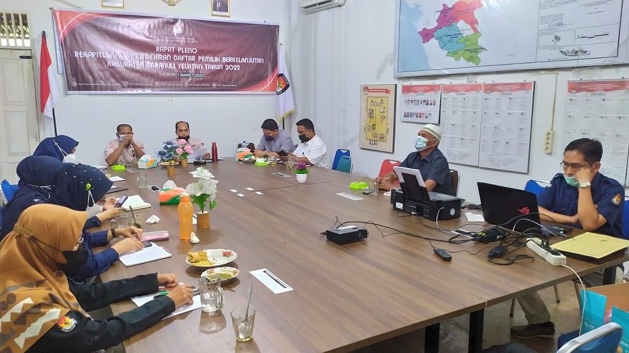 KPU Tapanuli Selatan melaksanakan rapat pleno Rekapitulasi Daftar Pemilih Berkelanjutan (DPB) periode bulan Februari 2022, Rapat Pleno ini dihadiri oleh Komisioner KPU diantaranya Panataran Simanjuntak (Ketua), Anggota : Efendi Rambe, Kemri Syafii, Zulhajji Siregar, Sekretaris : Riski Hastuti Ritonga, Kasubbag Umum dan Logistik Hasanuddin Sitompul, Kasubbag Program dan Data Annur Rasyidah Siregar, Plt Kasubbag Teknis Azizah Barry, Plt Kasubbag Hukum Gaheranih Harahap, Admin Sidalih, Notulensi dan Staf Data Informasi KPU Kabupaten Tapanuli Selatan.