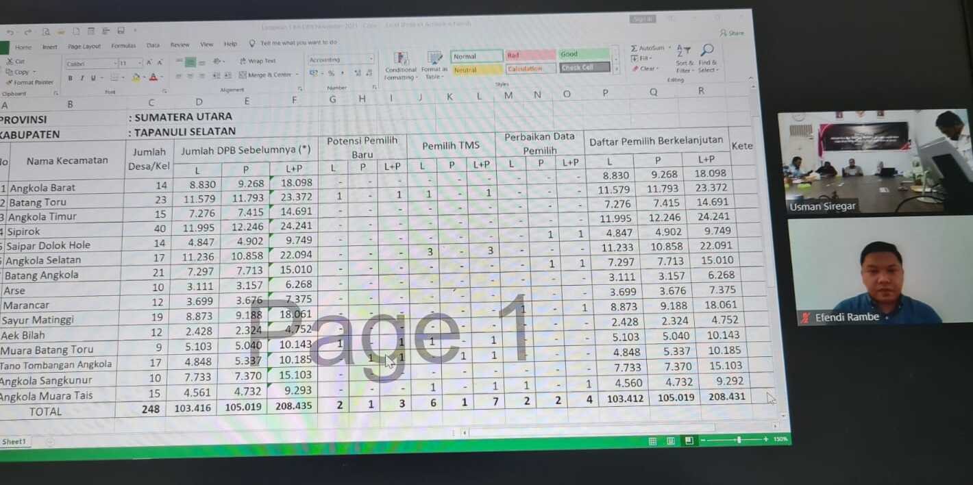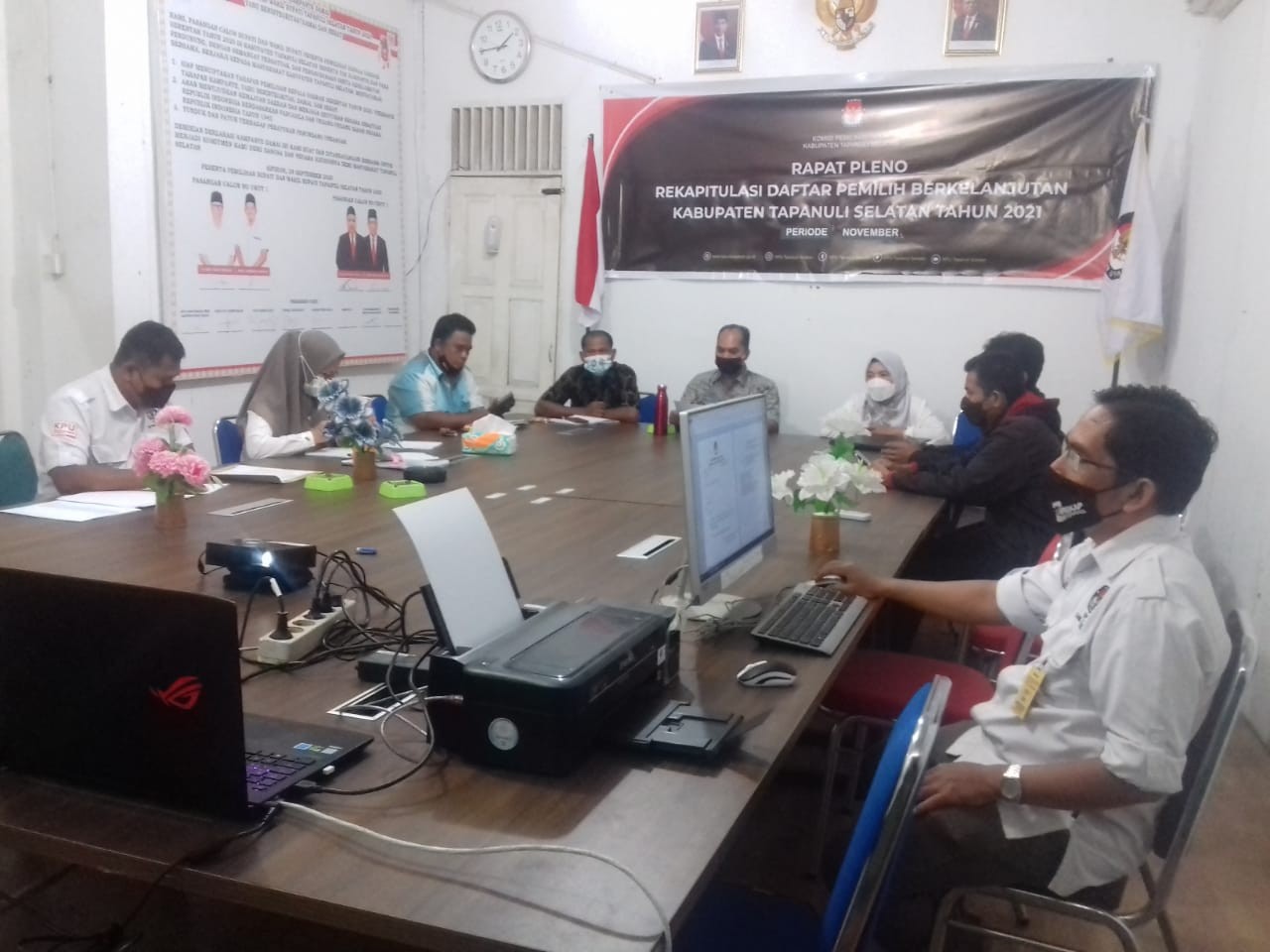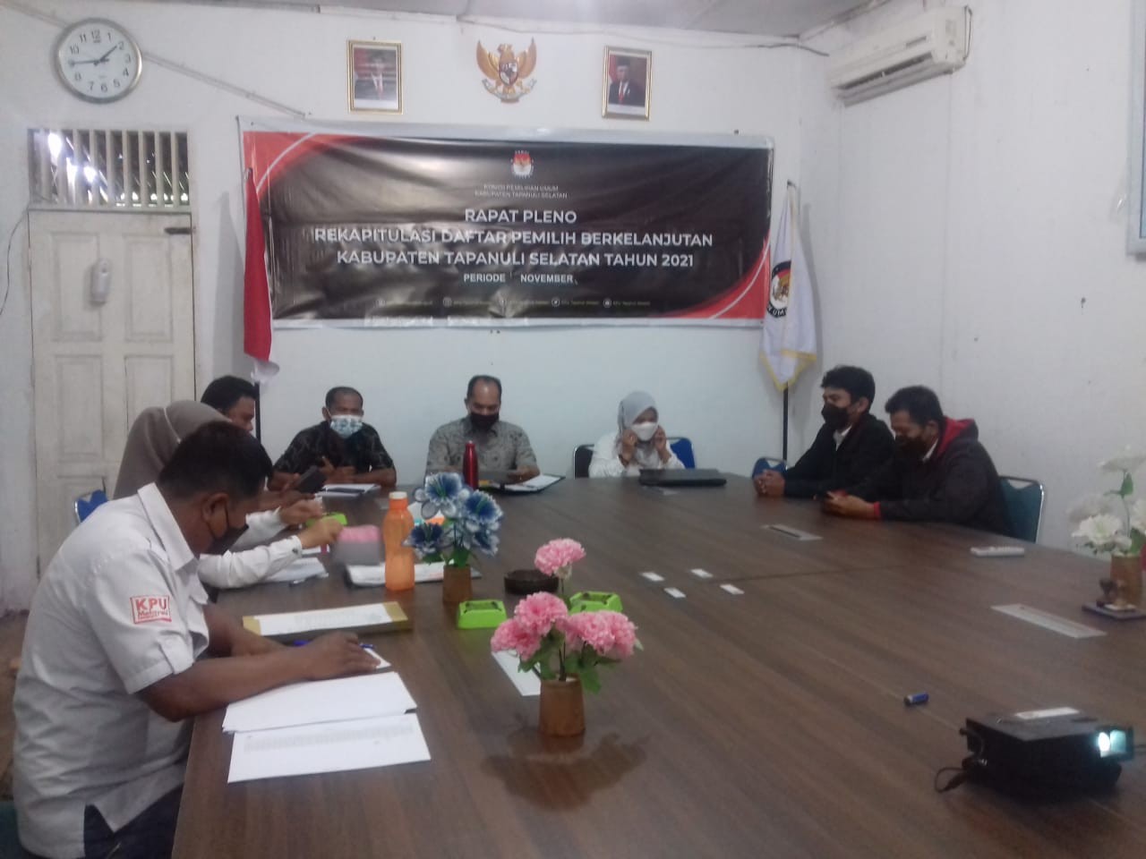 Komisi Pemilihan Umum Kabupaten Tapanuli Selatan menggelar Rapat Pleno Penetapan Daftar Pemilih Berkelanjutan Periode November 2021 pada hari Kamis 02 Desember 2021. Ada beberapa Perubahan data Pemilih selama sebulan terakhir, hal ini diakibatkan Pemilih yang TMS, sesuai dengan PKPU 6 thn 2021 tentang Daftar Pemilih Berkelanjutan. Jika dibandingkan antara DPB periode Oktober 2021 yang berjumlah 208.435 Pemilih sementara DPB periode November 2021 berjumlah 208.431 pemilih maka dapat dilihat bahwa ada beberapa pengurangan sebanyak 4 (empat) Pemilih, hal ini diakibatkan adanya pemilih Tidak Memenuhi Syarat (TMS) Meninggal Dunia dan adanya Pemilih yang bukan penduduk sebanyak 3 (tiga) Pemilih, serta adanya 3 (tiga) pemilih yang menjadi pemilih baru pindah masuk antar Desa dalam wilayah Kabupaten Tapanuli Selatan.