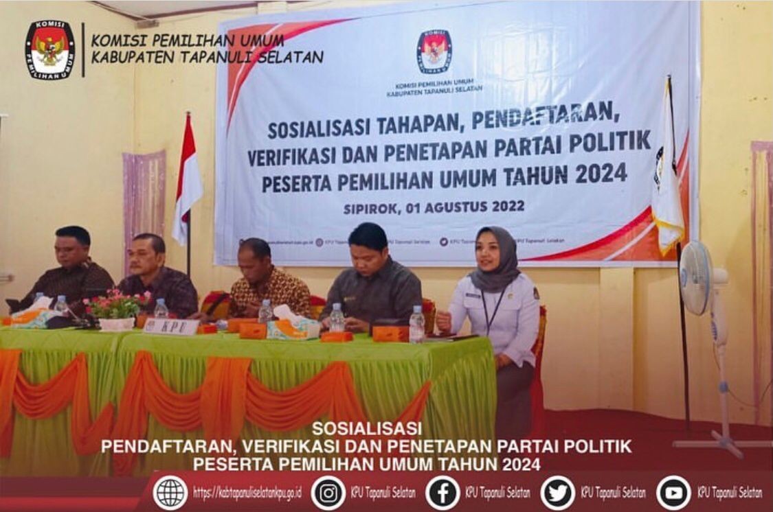 KPU Kabupaten Tapanuli Selatan Melaksanakan Sosialisasi Pendaftaran, Verifikasi, dan Penetapan Partai Politik Peserta Pemilihan Umum Tahun 2024.