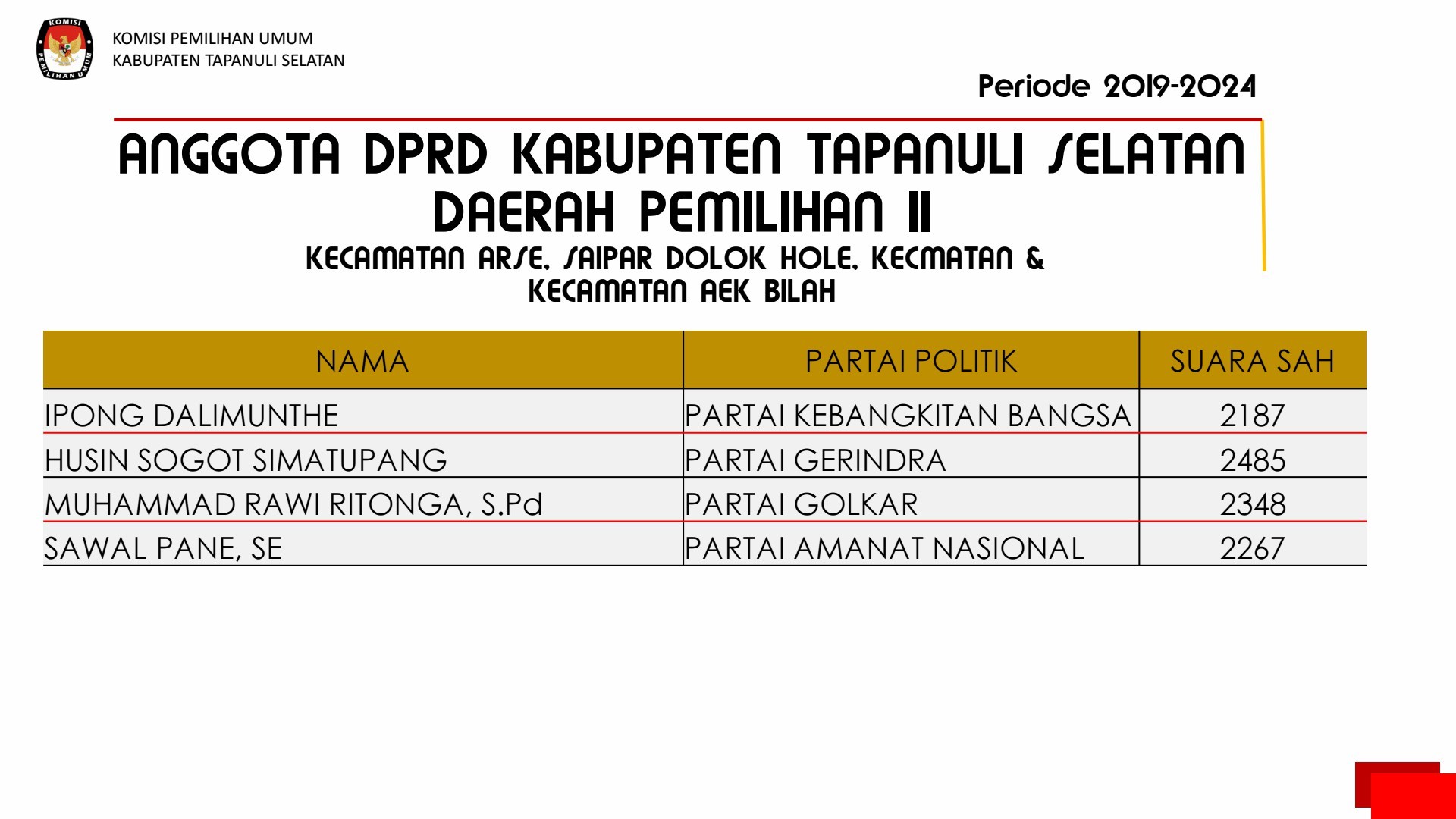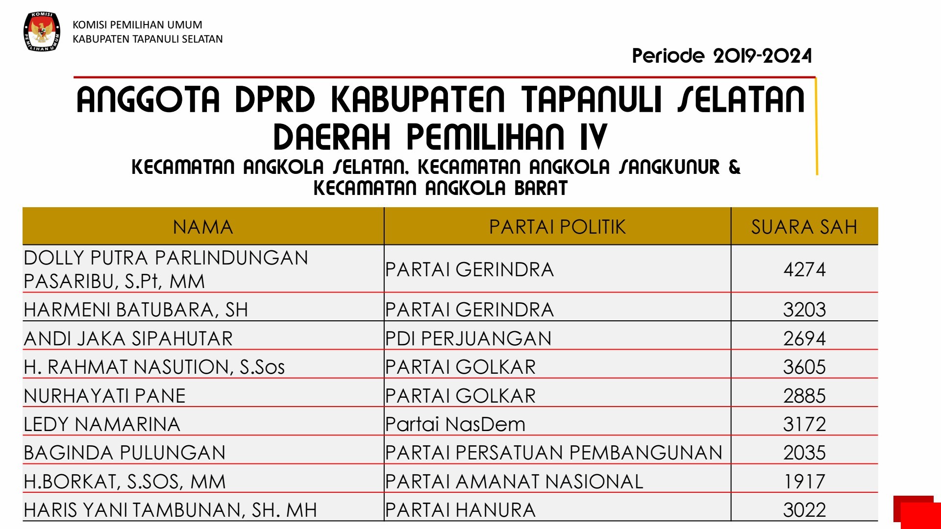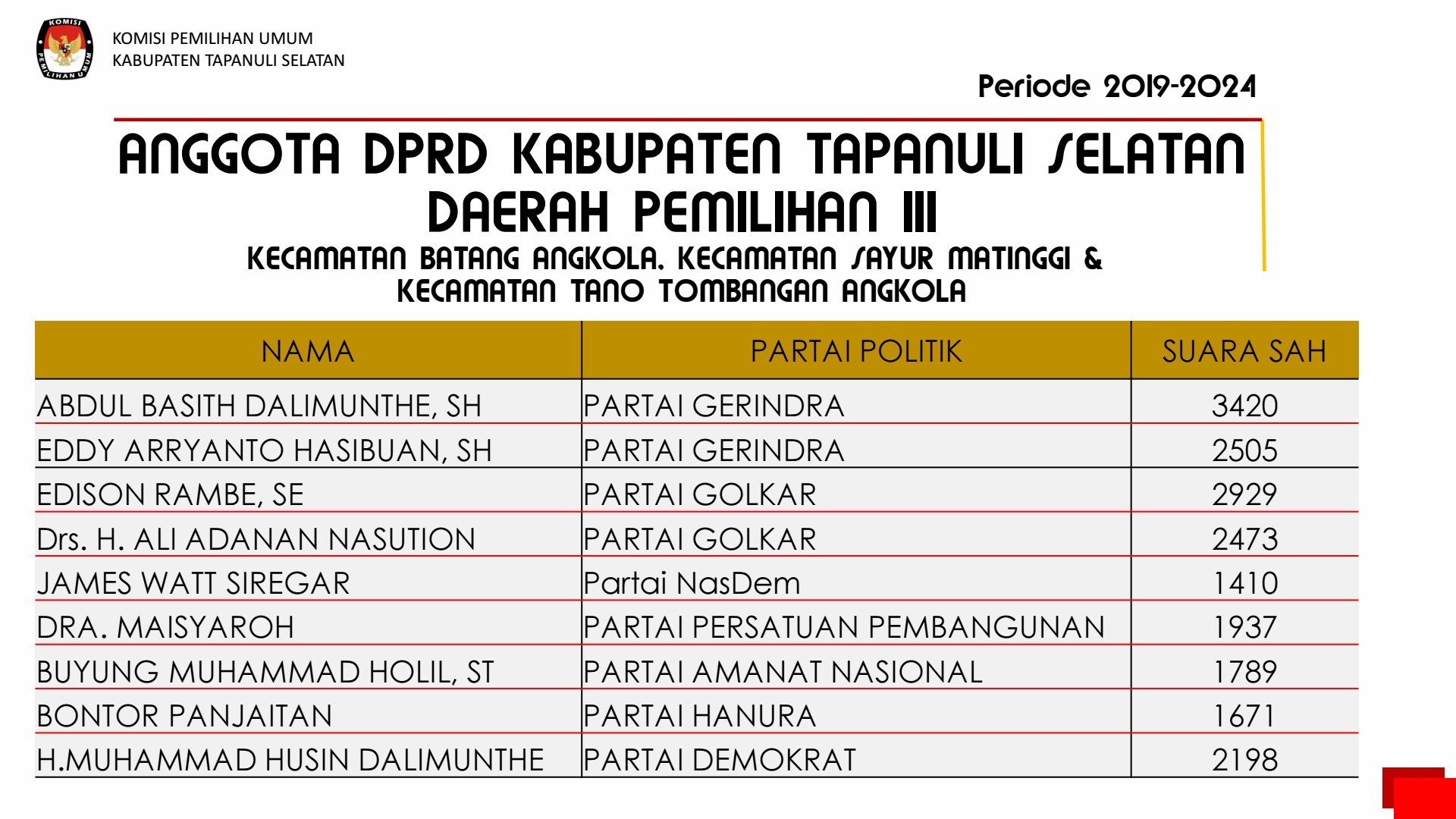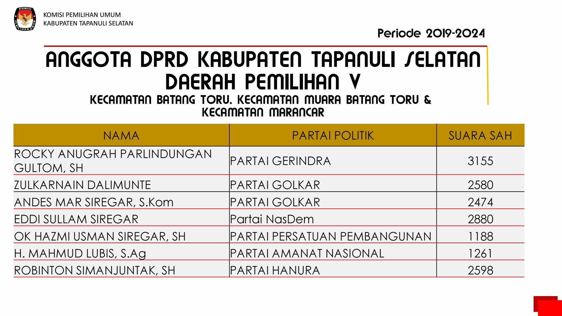 PEMILIHAN UMUM PEMILIHAN UMUM ANGGOTA DPRD KABUPATEN TAPANULI SELATAN 2019